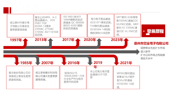 實全股份有限公司成立於1985年,是集研發、生產、銷售於一體的塑膠薄膜電容器製造商。